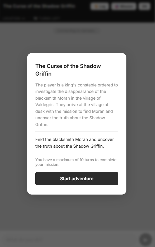 | Tags | artificial-intelligence, Fantasy, Medieval, Mystery, Narrative, storygame, Text based, Turn-based |